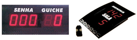 - 5 dígitos de 7 cm, 3 dígitos para indicar senha e 2 para guichê